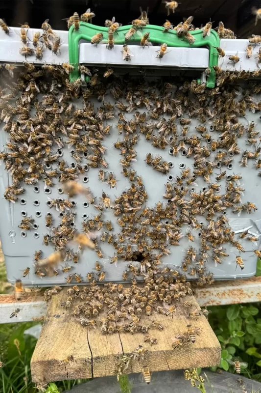 Arılar 5–10 dakika uçtuktan sonra zaman kaybetmeden kovanlarınıza aktarın.